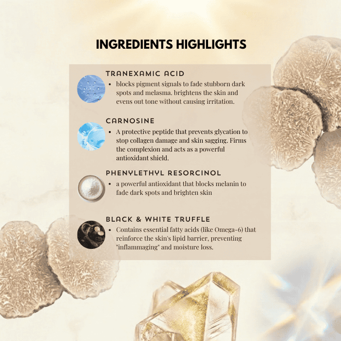 Indulge your skin in the ultimate luxury with Alluora’s Truffle Diamond Treatment Mask—a high-performance treatment designed to go beyond surface brightening. Powered by rare truffle extracts and an advanced 5-pathway system, this mask works deep within the skin to repair, protect, and restore a luminous, inner-lit complexion.