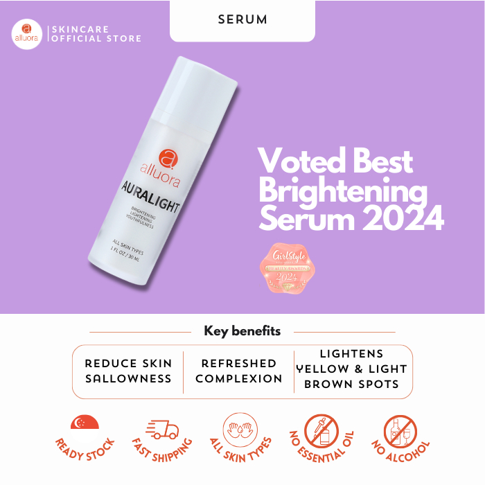 Suitable for daily use. This Auralight Serum lightens yellow & light brown pigmentation!